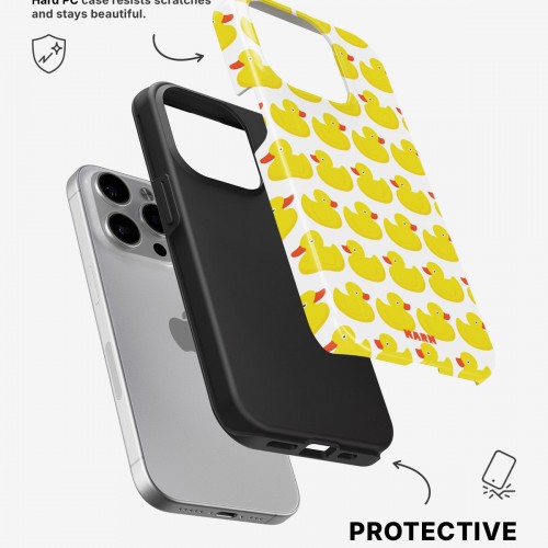 Meet the Tough Case for iPhone 13 Pro Max in the pattern: Rubber Ducks. Strong on the outside, soft on the inside. This case is made to protect your phone from daily drops, scratches and surprises while keeping it stylish.