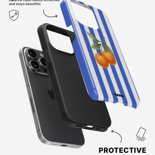 Meet the Tough Case for iPhone 13 Pro in the pattern: Orange Stripes. Strong on the outside, soft on the inside. This case is made to protect your phone from daily drops, scratches and surprises while keeping it stylish.