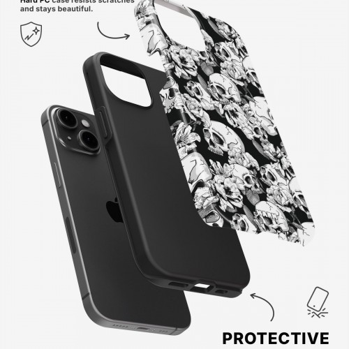 Meet the Tough Case for iPhone 13 in Skull Garden. Strong on the outside, soft on the inside. This case is made to protect your phone from daily drops, scratches and surprises while keeping it stylish.
