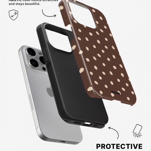 Meet the Tough Case for iPhone 14 Pro Max in the pattern: Choco Dots. Strong on the outside, soft on the inside. This case is made to protect your phone from daily drops, scratches and surprises while keeping it stylish.