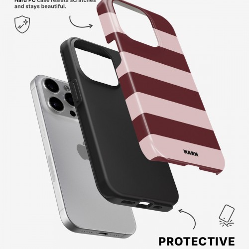 Meet the Tough Case for iPhone 14 Pro Max in the pattern: Cranberry Stripe. Strong on the outside, soft on the inside. This case is made to protect your phone from daily drops, scratches and surprises while keeping it stylish.