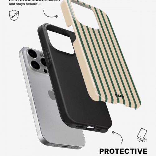 Meet the Tough Case for iPhone 14 Pro Max in the pattern: Evergreen Stripe. Strong on the outside, soft on the inside. This case is made to protect your phone from daily drops, scratches and surprises while keeping it stylish.