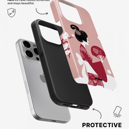 Meet the Tough Case for iPhone 14 Pro Max in the pattern: Geisha. Strong on the outside, soft on the inside. This case is made to protect your phone from daily drops, scratches and surprises while keeping it stylish.