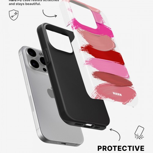 Meet the Tough Case for iPhone 14 Pro Max in the pattern: Lipstick Smears. Strong on the outside, soft on the inside. This case is made to protect your phone from daily drops, scratches and surprises while keeping it stylish.