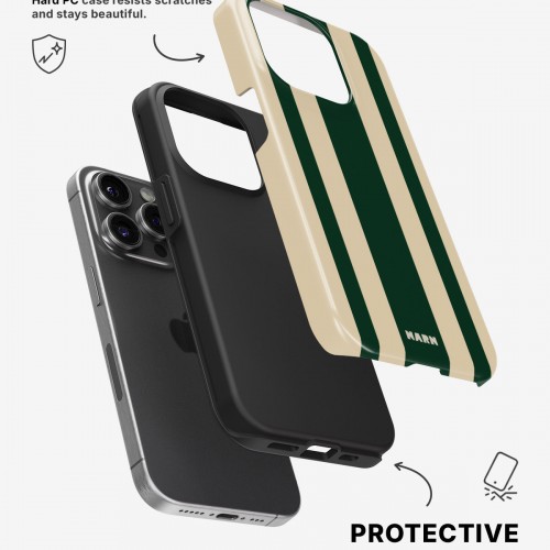Meet the Tough Case for iPhone 14 Pro in Vert Stripe. Strong on the outside, soft on the inside. This case is made to protect your phone from daily drops, scratches and surprises while keeping it stylish.