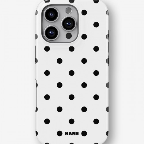 Meet the Tough Case for iPhone 14 in the pattern: Mono Dots. Strong on the outside, soft on the inside. This case is made to protect your phone from daily drops, scratches and surprises while keeping it stylish.