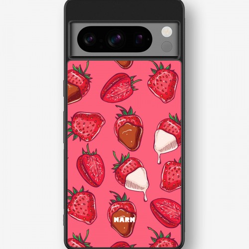 This design features: chocolate, strawberries, fruit, sweet, summer