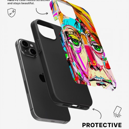 Meet the Tough Case for iPhone 15 Plus in the pattern: Abstract Portrait. Strong on the outside, soft on the inside. This case is made to protect your phone from daily drops, scratches and surprises while keeping it stylish.