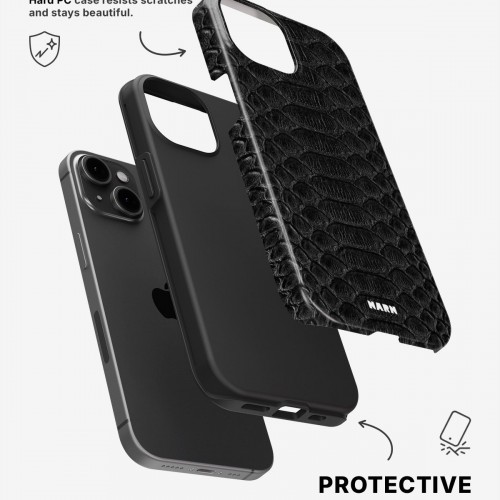 Meet the Tough Case for iPhone 15 Plus in the pattern: Black Snake. Strong on the outside, soft on the inside. This case is made to protect your phone from daily drops, scratches and surprises while keeping it stylish.