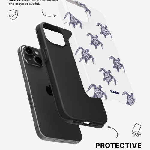 Meet the Tough Case for iPhone 15 Plus in the pattern: Blue Turtles. Strong on the outside, soft on the inside. This case is made to protect your phone from daily drops, scratches and surprises while keeping it stylish.