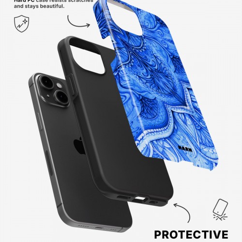 Meet the Tough Case for iPhone 15 Plus in the pattern: Blue Vintage. Strong on the outside, soft on the inside. This case is made to protect your phone from daily drops, scratches and surprises while keeping it stylish.