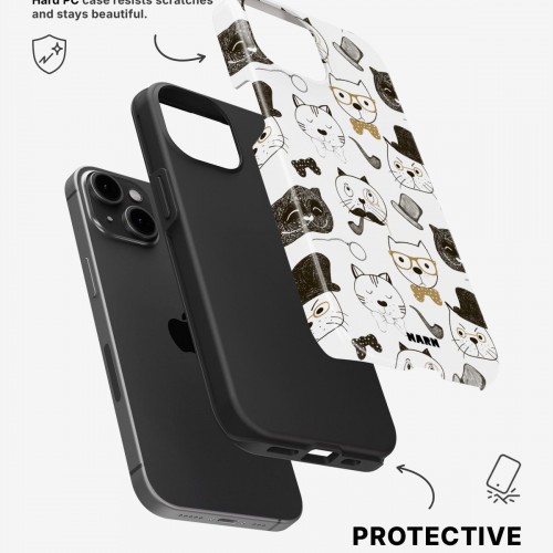 Meet the Tough Case for iPhone 15 Plus in the pattern: Cartoon Cats. Strong on the outside, soft on the inside. This case is made to protect your phone from daily drops, scratches and surprises while keeping it stylish.