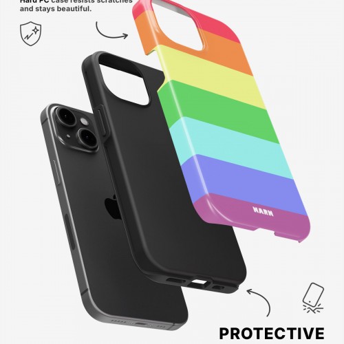 Meet the Tough Case for iPhone 15 Plus in the pattern: Color Symphony. Strong on the outside, soft on the inside. This case is made to protect your phone from daily drops, scratches and surprises while keeping it stylish.