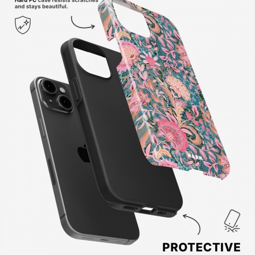 Meet the Tough Case for iPhone 15 Plus in the pattern: Fantasy Flowers. Strong on the outside, soft on the inside. This case is made to protect your phone from daily drops, scratches and surprises while keeping it stylish.