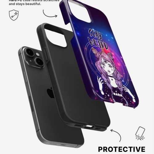 Meet the Tough Case for iPhone 15 Plus in the pattern: Galactic Weird. Strong on the outside, soft on the inside. This case is made to protect your phone from daily drops, scratches and surprises while keeping it stylish.