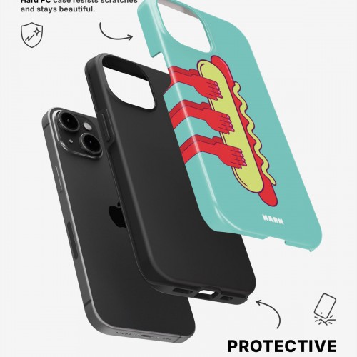 Meet the Tough Case for iPhone 15 Plus in the pattern: Hot Dog. Strong on the outside, soft on the inside. This case is made to protect your phone from daily drops, scratches and surprises while keeping it stylish.