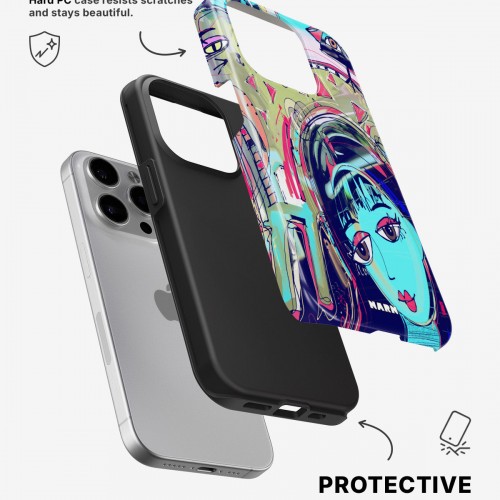 Meet the Tough Case for iPhone 15 Pro Max in the pattern: Abstract Cat. Strong on the outside, soft on the inside. This case is made to protect your phone from daily drops, scratches and surprises while keeping it stylish.