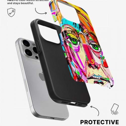 Meet the Tough Case for iPhone 15 Pro Max in the pattern: Abstract Portrait. Strong on the outside, soft on the inside. This case is made to protect your phone from daily drops, scratches and surprises while keeping it stylish.