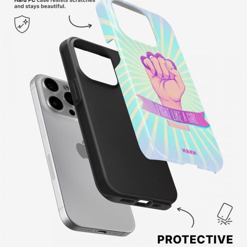 Meet the Tough Case for iPhone 15 Pro Max in the pattern: Fight Like A Girl. Strong on the outside, soft on the inside. This case is made to protect your phone from daily drops, scratches and surprises while keeping it stylish.