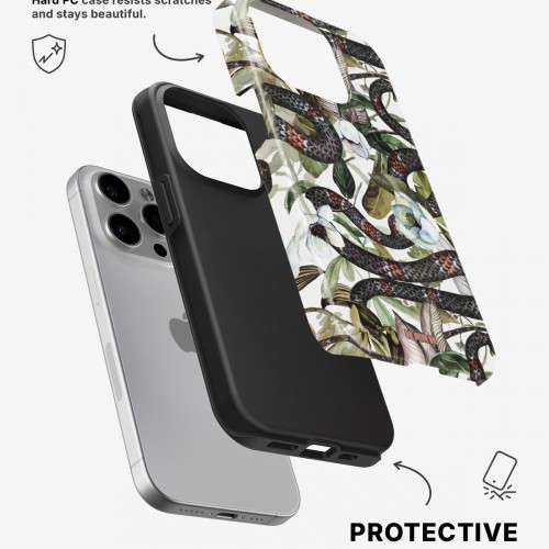 Meet the Tough Case for iPhone 15 Pro Max in the pattern: Jungle Snake. Strong on the outside, soft on the inside. This case is made to protect your phone from daily drops, scratches and surprises while keeping it stylish.