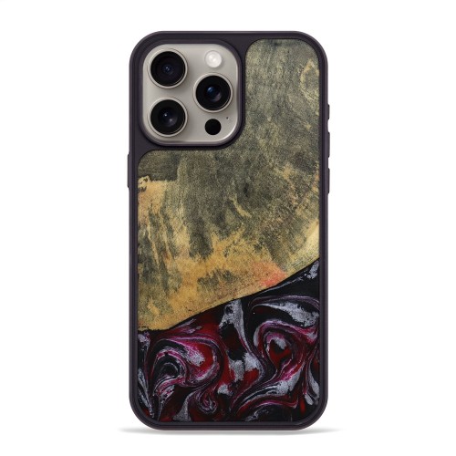 iPhone 15 Pro Max Wood Phone Case – Beckham (Teal & Gold, 803228)