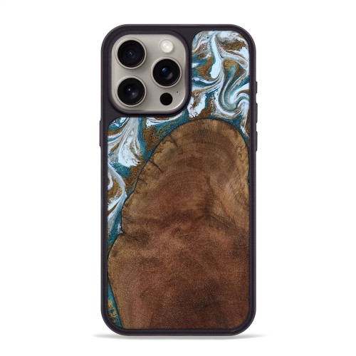 iPhone 15 Pro Max Wood Phone Case – Benson (Teal & Gold, 805549)