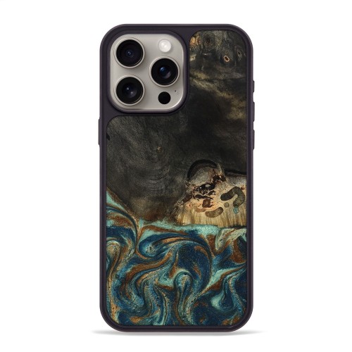 iPhone 15 Pro Max Wood Phone Case – Cyrus (Teal & Gold, 802970)