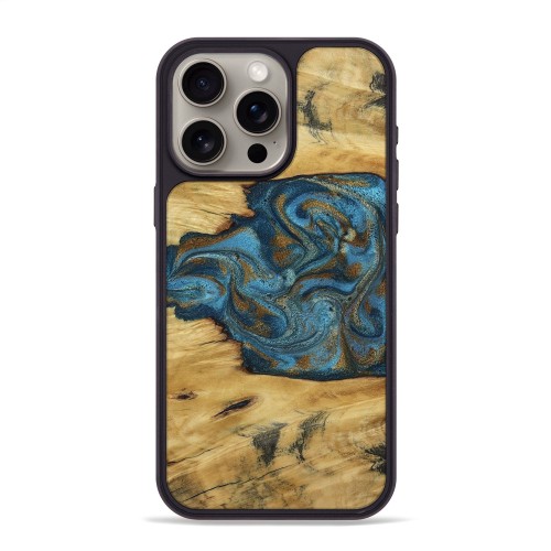 iPhone 15 Pro Max Wood Phone Case – Dallas (Teal & Gold, 800431)
