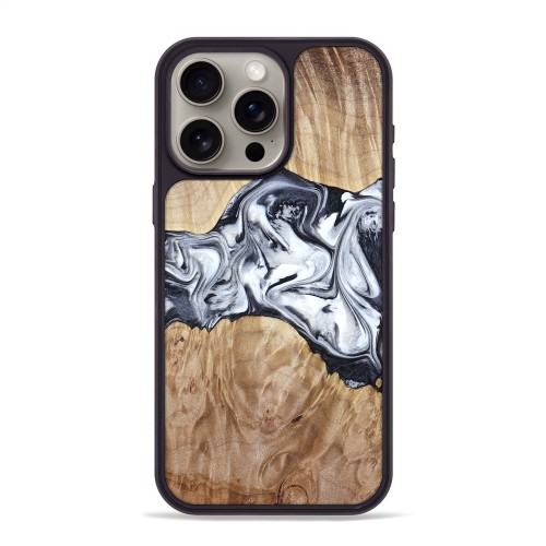 iPhone 15 Pro Max Wood Phone Case – Delaney (Black & White, 803239)