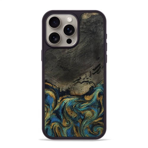 iPhone 15 Pro Max Wood Phone Case – Hailey (Teal & Gold, 802990)