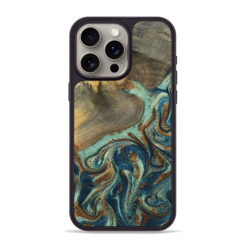 iPhone 15 Pro Max Wood Phone Case – Kashton (Teal & Gold, 802993)