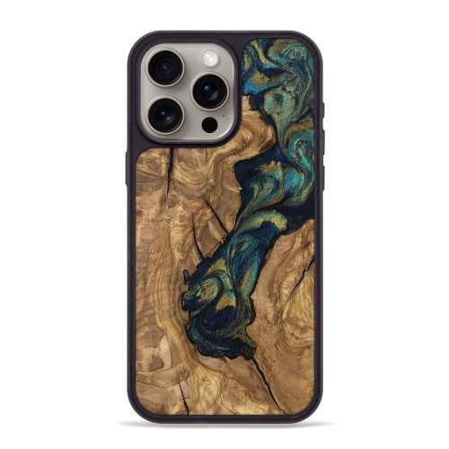 iPhone 15 Pro Max Wood Phone Case – Phil (Teal & Gold, 805815)