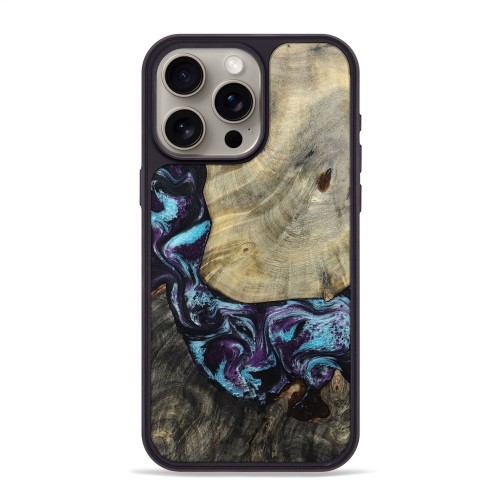 iPhone 15 Pro Max Wood Phone Case – Tamya (Teal & Gold, 805199)