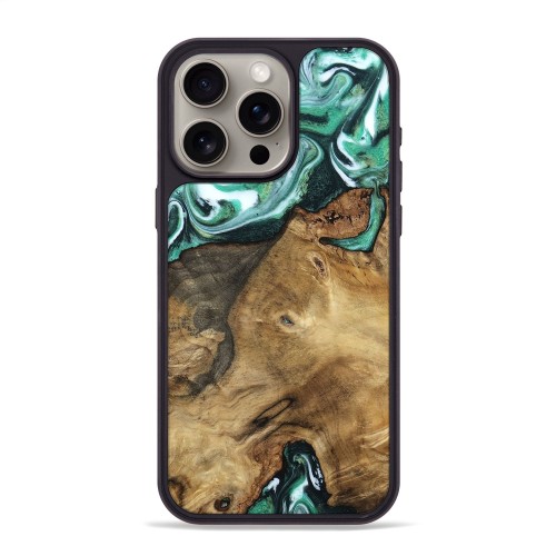 iPhone 15 Pro Max Wood Phone Case – Tariq (Teal & Gold, 798191)