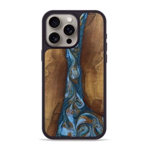 iPhone 15 Pro Max Wood Phone Case – Valorie (Teal & Gold, 802976)
