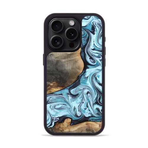 iPhone 15 Pro ResinArt Phone Case – Docia (Teal & Gold, 805935)