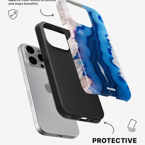 Meet the Tough Case for iPhone 15 Pro in Blue Agate. Strong on the outside, soft on the inside. This case is made to protect your phone from daily drops, scratches and surprises while keeping it stylish.