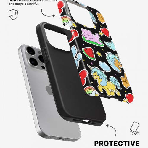 Meet the Tough Case for iPhone 15 Pro in Cute Stickers. Strong on the outside, soft on the inside. This case is made to protect your phone from daily drops, scratches and surprises while keeping it stylish.