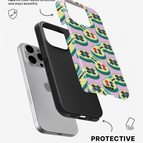 Meet the Tough Case for iPhone 15 Pro in Gamepad. Strong on the outside, soft on the inside. This case is made to protect your phone from daily drops, scratches and surprises while keeping it stylish.