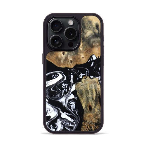 iPhone 15 Pro Wood Phone Case – Aditya (Black & White, 804586)