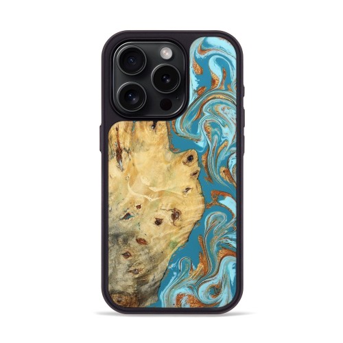 iPhone 15 Pro Wood Phone Case – Brandyn (Teal & Gold, 804893)