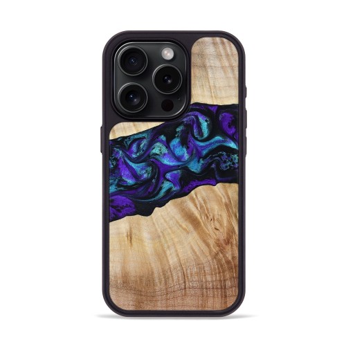 iPhone 15 Pro Wood Phone Case – Desirae (Teal & Gold, 803961)