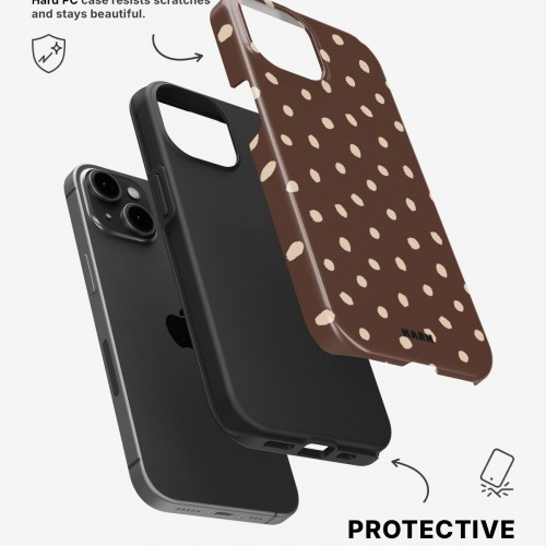 Meet the Tough Case for iPhone 15 in the pattern: Choco Dots. Strong on the outside, soft on the inside. This case is made to protect your phone from daily drops, scratches and surprises while keeping it stylish.