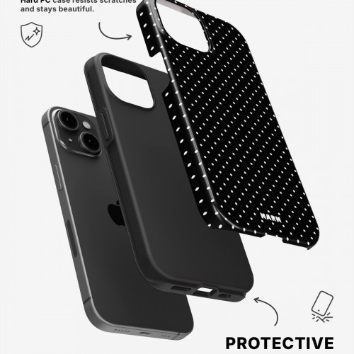 Meet the Tough Case for iPhone 15 in the pattern: Classic Dots. Strong on the outside, soft on the inside. This case is made to protect your phone from daily drops, scratches and surprises while keeping it stylish.
