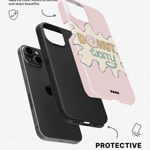 Meet the Tough Case for iPhone 15 in Donut Worry. Strong on the outside, soft on the inside. This case is made to protect your phone from daily drops, scratches and surprises while keeping it stylish.