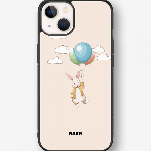 This design features: balloons, clouds, cute, flying, rabbit