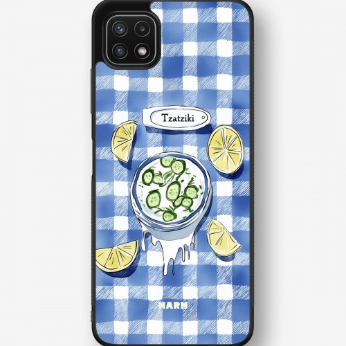 This design features: gingham, gingham tablecloth, greek vibe, mediterranean style, tzatziki