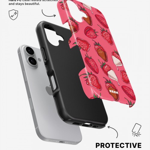 Meet the Tough Case for iPhone 16 Plus in the pattern: Strawberry Chocolate. Strong on the outside, soft on the inside. This case is made to protect your phone from daily drops, scratches and surprises while keeping it stylish.