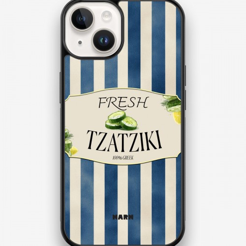 This design features: cucumber, lemon, greek, stripes, tzatziki