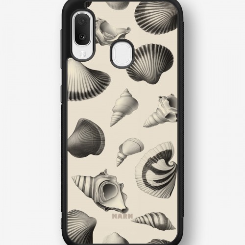 This design features: beach style, ocean theme, monochrome, seashells
